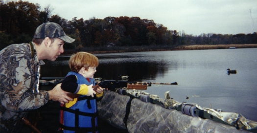 gun. They love to shoot the duck and geese decoys from the blind. And