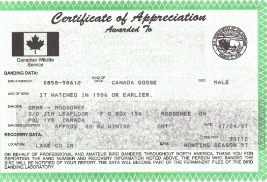 If you read this closely you can see that the bird was banded near