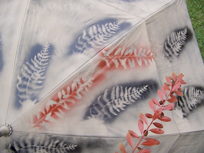 Now use red primer and start fading your next stencil into the umbrella