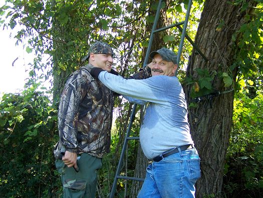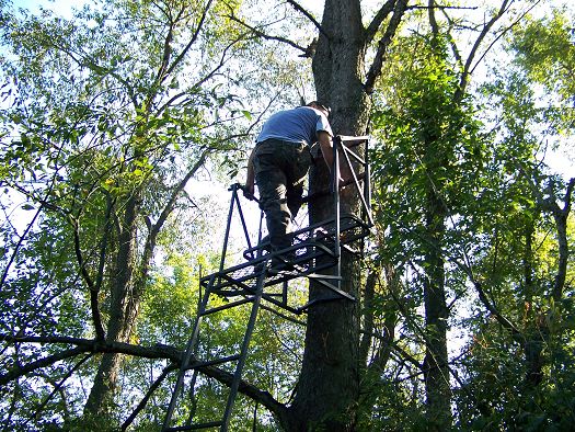 here. Putting up deer stands. We all know the drill, get the ladders